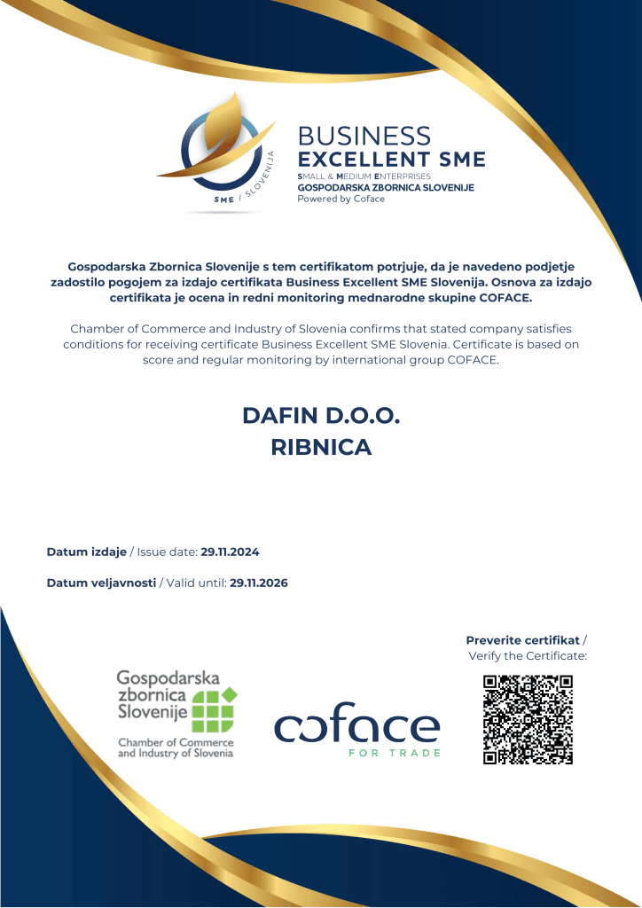 Pridobili smo certifikat Excellent SME Slovenija, ki ga podeljuje GZS v